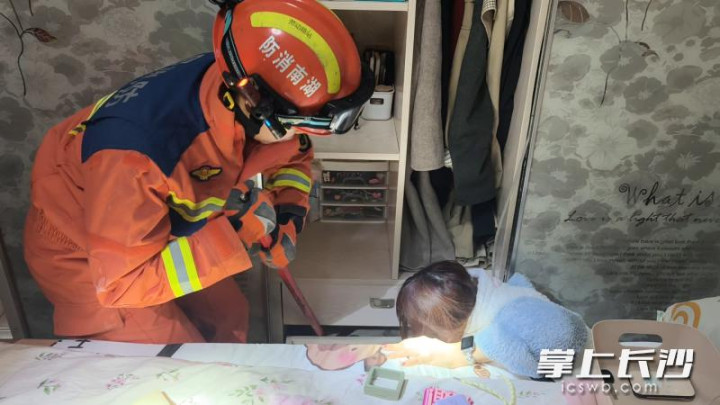 长沙晚报掌上长沙1月29日讯(通讯员朱伟强)1月28日,天心区裕南街街道裕南街社区解放四村新4栋发生一起独居女子被困警情。一名独居女子在取衣柜抽屉后方物品时,手肘不慎被死死卡住无法动弹,情急之下拨打119求助。天心区消防救援大队劳动路消防救援站接警后快速响应,凭借专业技术开锁破局,巧用杠杆原理成功施救。